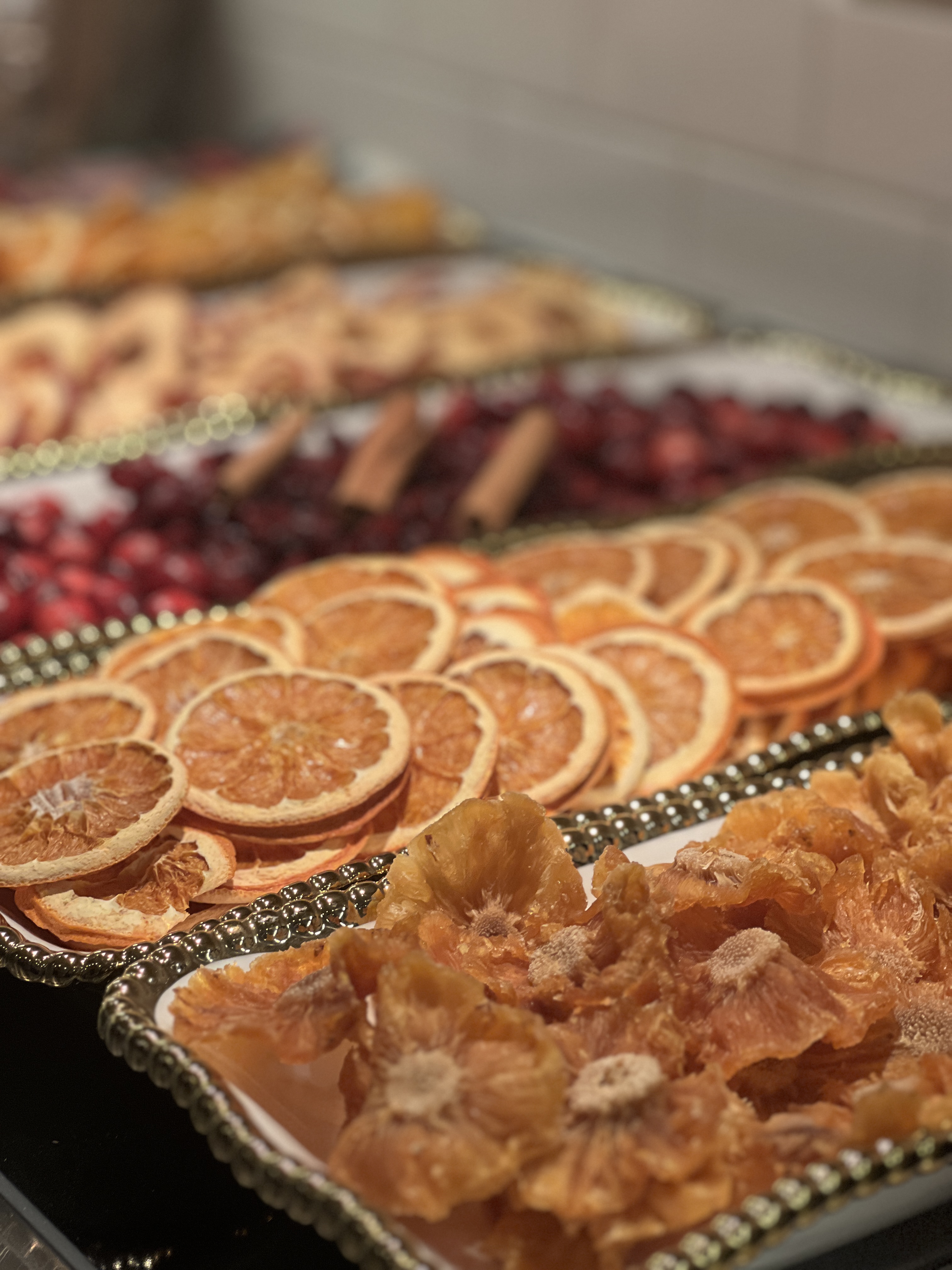 He spoke thoughtfully about each ingredient—dried oranges and pears for brightness, cinnamon sticks for warmth, pineapple for softness, cloves and star anise for depth and spice—explaining not just how they smell, but what they evoke. Comfort. Memory. Calm. Many of the dried fruits had been lovingly dehydrated by Jamie and his wife, Jenn, a quiet, meaningful detail that made the experience feel even more personal and intentional.